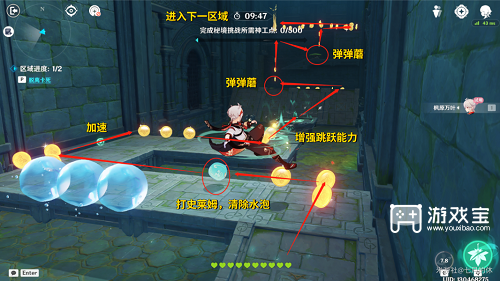 原神履见青云记是原神神工天巧宝录之章第二天的关卡 ,捡金币,履见略打掉史莱姆就能清除水泡